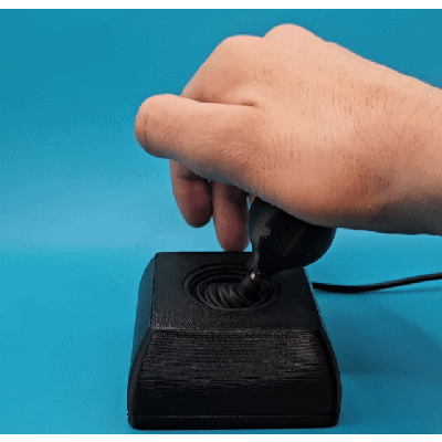 Adaptive Ball Joystick designed for individuals who cannot use a standard controller or joystick. Features a ball-style joystick top 3D printed in a slightly tacky rubberized filament for improved grip and control.