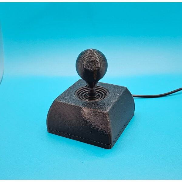 The ball-style joystick top is 3D printed using a slightly tacky rubberized filament, providing improved grip and control during extended gameplay sessions.