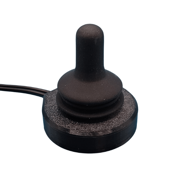 Adaptive Joystick with Integrated Button designed for individuals who cannot use a standard controller or joystick. Features a joystick top made from slightly tacky rubber for improved grip, with a built-in press button activated by pressing down on the joystick.